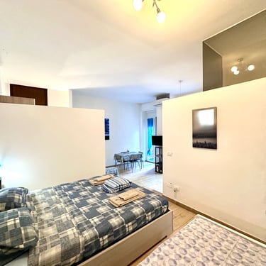 1 LETTO MATRIMONIALE , 1 LETTO SINGOLO, 1 DIVANO LETTO. Per un totale di 4 posti letto. O anche 4 posti letto + 1 bambino/a.